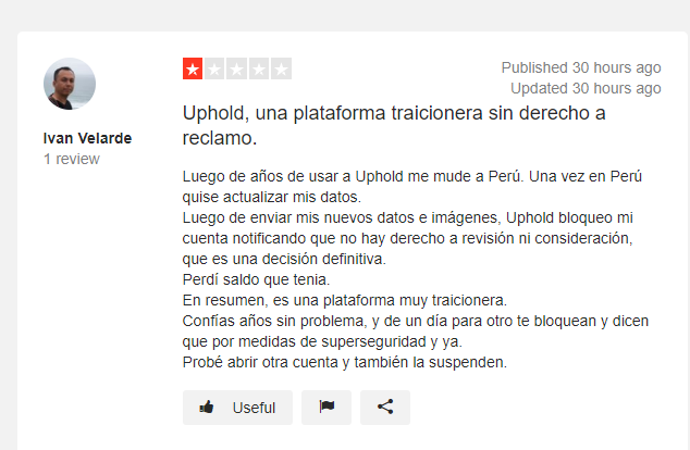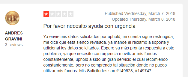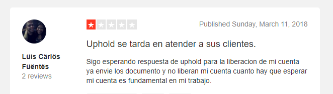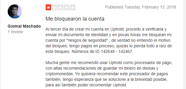 Usuario habla del pésimo soporte de Uphold y de la suspensión sin razón de cuentas